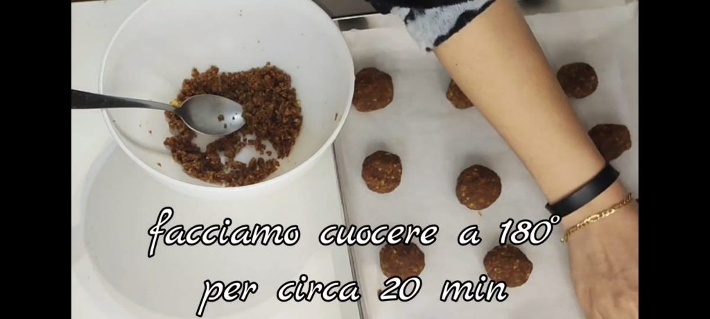 Wir fügen die Milch hinzu und vermischen alles. Wir nehmen etwas von der Masse, formen sie mit den Händen zu Kugeln und legen sie auf ein mit Backpapier ausgelegtes Blech. Wir machen so weiter, bis die gesamte Masse aufgebraucht ist.