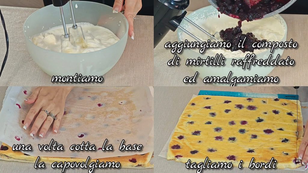 Wir schlagen. Wir fügen die abgekühlte Blaubeermischung hinzu und mischen gut.