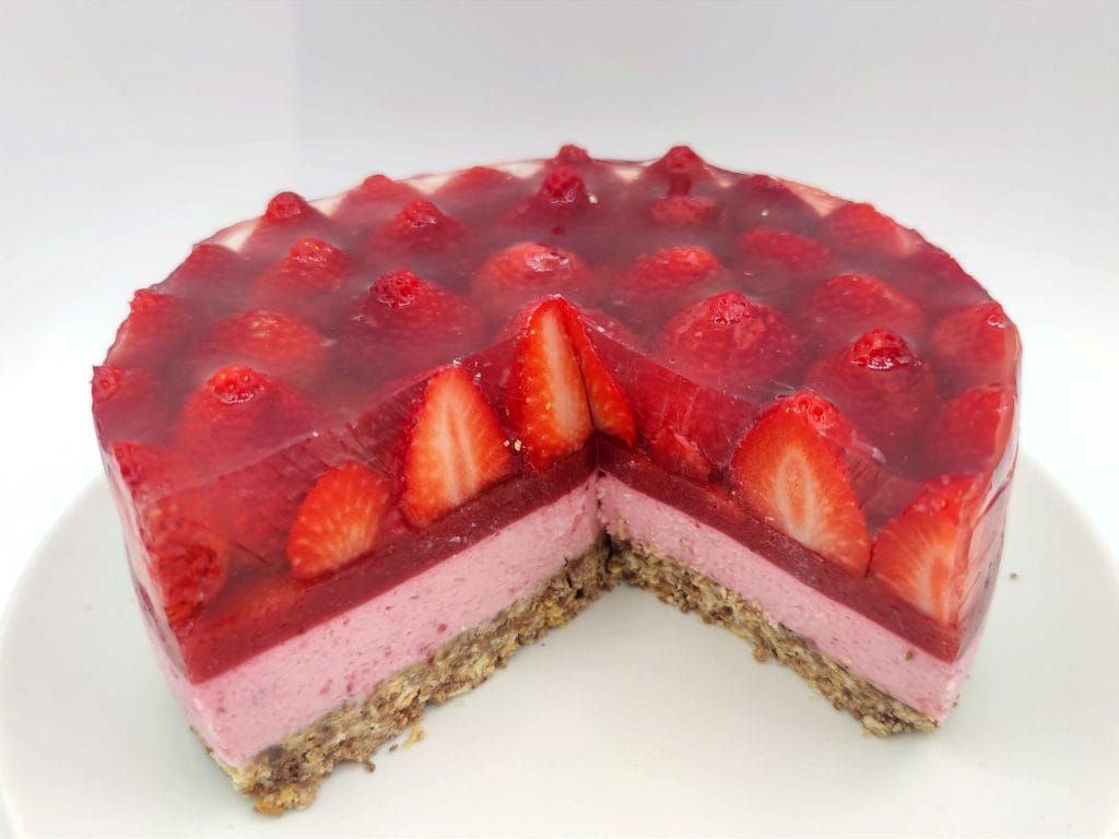 Erdbeer-Käsekuchen mit 3D-Aspik