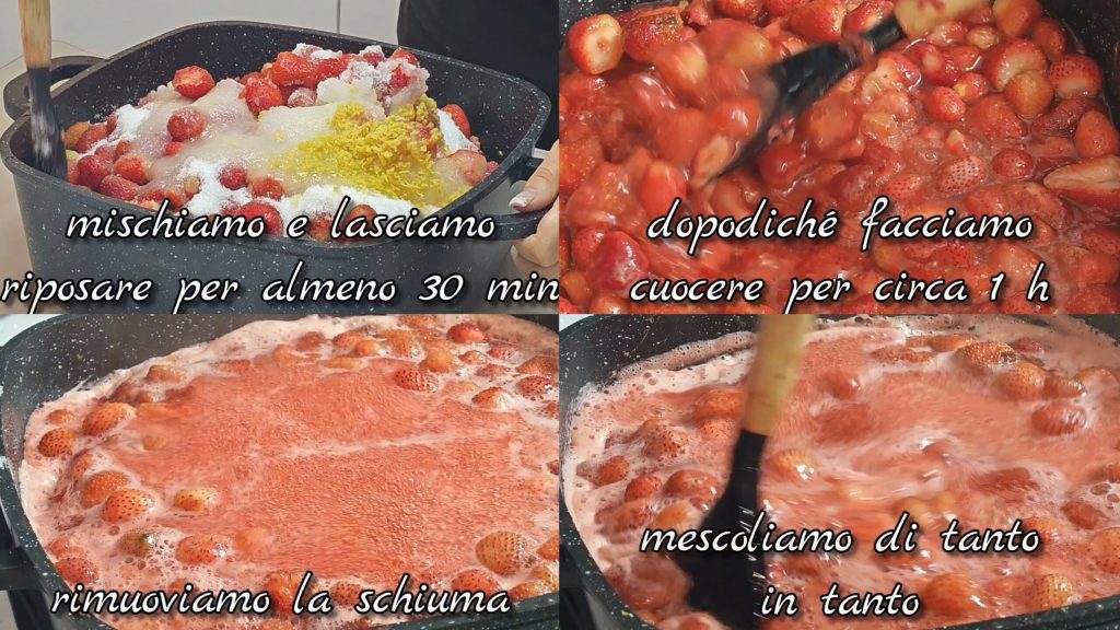Eine Konfitüre voller Erinnerungen und Liebe, weil ich die Erdbeeren selbst im Garten meiner Mutter gepflückt habe. Daher bin ich mir sicher, dass sie 100% biologisch und unbehandelt sind ☺️. Nach vielen Jahren konnte ich wieder den Duft von Erdbeeren riechen, den ich als Kind erlebt habe, denn heute haben die Erdbeeren, die ich kaufe, nichts damit zu tun! Ich bin sehr stolz 😁! Ich habe mich entschieden, sie mit Zitrone, Schale und Saft zu aromatisieren, weil ich denke, dass die Kombination aus Erdbeere und Zitrone das Beste ist!!!