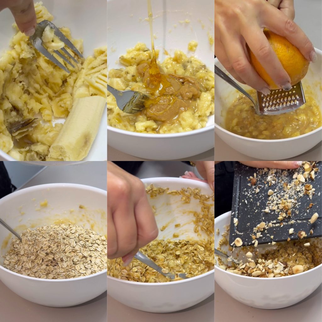Wenn du einen gesunden, leckeren und superschnell zubereiteten Snack suchst, werden diese Gran-Cerealien-Kekse mit Banane, Hafer und Erdnussbutter dein neuer Frühstücks- oder Pausensnack-Verbündeter. Sie sind in einer einzigen Schüssel zubereitet, ohne Eier und ohne raffinierten Zucker, und sind dank reifer Banane und Honig von Natur aus süß. Die Kombination aus Haferflocken und Nüssen macht sie ballaststoffreich und nahrhaft, perfekt um Energie zu liefern, ohne zu beschweren.