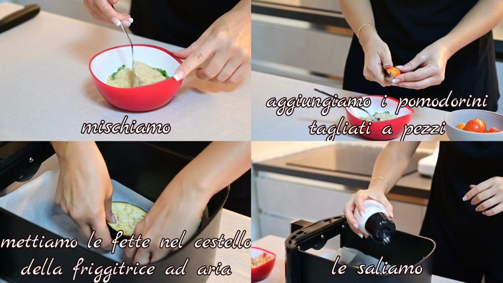 Die Zubereitung der gratinierten Auberginen in der Heißluftfritteuse ist sehr einfach und schnell, sehen Sie sich das Video HIER an.