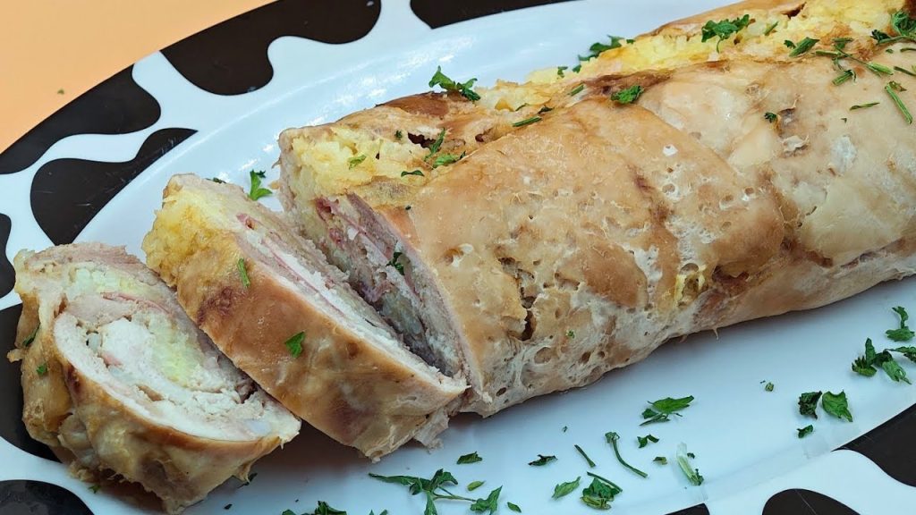 Die Hähnchen- und Reisrolle ist ein vielseitiges, schmackhaftes Gericht und perfekt sowohl für ein Familienessen als auch für einen besonderen Anlass. Zartes Hähnchen, gewürfelt oder in dünnen Scheiben, umhüllt eine cremige Füllung aus Reis, der mit Kräutern und Gewürzen aromatisiert ist, und schafft so ein perfektes Gleichgewicht zwischen Zartheit und Geschmack. Einfach zuzubereiten kann diese Rolle im Ofen gebacken werden, bis sie eine goldene und appetitliche Oberfläche erhält, oder in Backpapier gewickelt werden, um ihre Saftigkeit zu bewahren. Ideal in Scheiben serviert, ist es ein wahrer Comfort Food, das sowohl Erwachsene als auch Kinder begeistert.