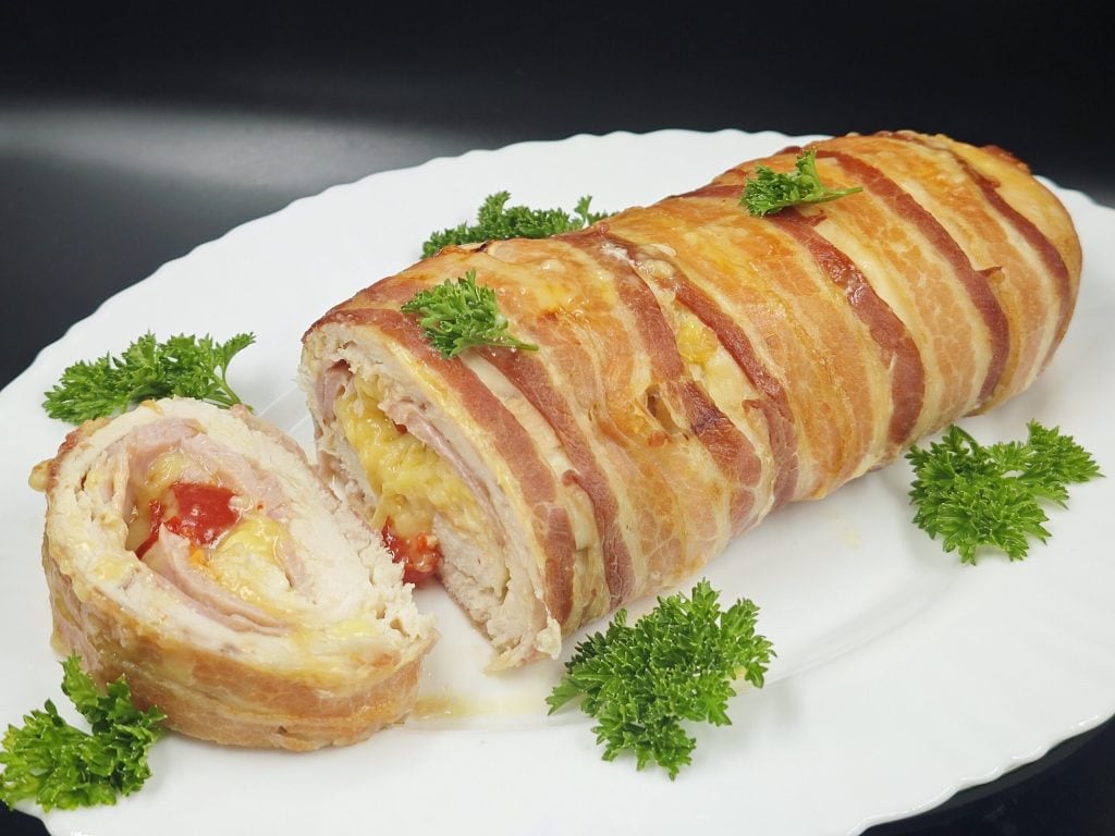 Zutaten für die Hähnchenrolle mit Speck und Paprika: