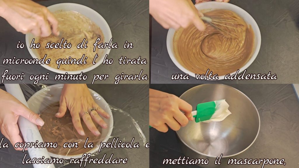 Ich habe mich dafür entschieden, es in der Mikrowelle zu machen, also habe ich es jede Minute herausgeholt, um es zu rühren. Sobald es eingedickt ist, decken wir es mit Frischhaltefolie ab und lassen es abkühlen.