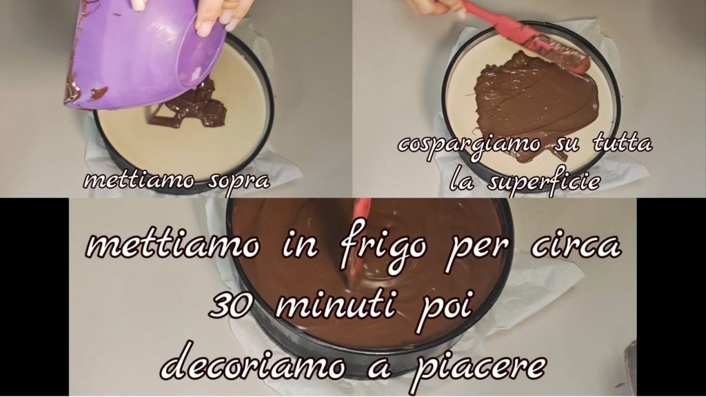 Wir fügen sie unter Rühren hinzu. Die entstandene Masse auf die Basis geben, glätten und für etwa 4 Stunden in den Kühlschrank stellen.