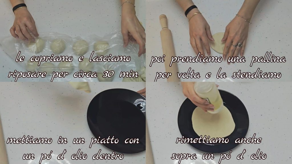 So fahren wir mit allen fort (der Teig muss gut geölt sein). So fahren wir mit allen Kugeln fort. Wenn wir fertig sind, decken wir sie ab und lassen sie noch etwa 30 Minuten ruhen.