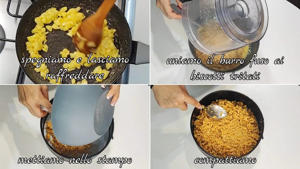 Die geschmolzene Butter mit den zerkleinerten Keksen vermengen und in die Form mit Backpapier geben. Gut andrücken.