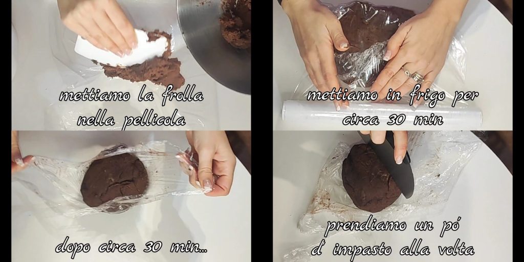 Den erhaltenen Teig wickeln wir in Frischhaltefolie und legen ihn für etwa 30 Minuten in den Kühlschrank. Danach nehmen wir jeweils ein wenig Teig und formen die verschiedenen Kekse.