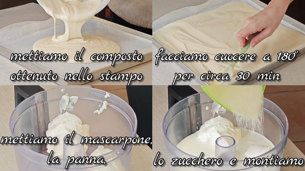 Wir geben die erhaltene Creme auf einen Teil, dann decken wir es mit der anderen Hälfte der Basis ab. Wir legen ein Blatt Backpapier darauf und stellen es für einige Stunden in den Kühlschrank. Nach einigen Stunden schneiden wir die Ränder ab
