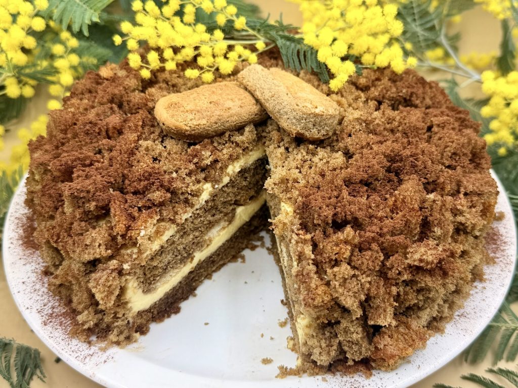 Ein cremiges, elegantes und super eindrucksvolles Mimosa-Tiramisu, perfekt für den 8. März. Ein Dessert, das zwei Klassiker in einer applauswürdigen Torte vereint 👏
