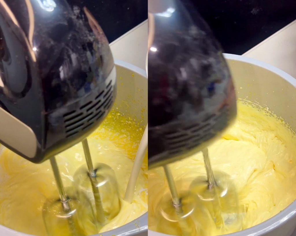 Diesen zum Teig geben. Mehl und Backpulver vorsichtig unterheben.