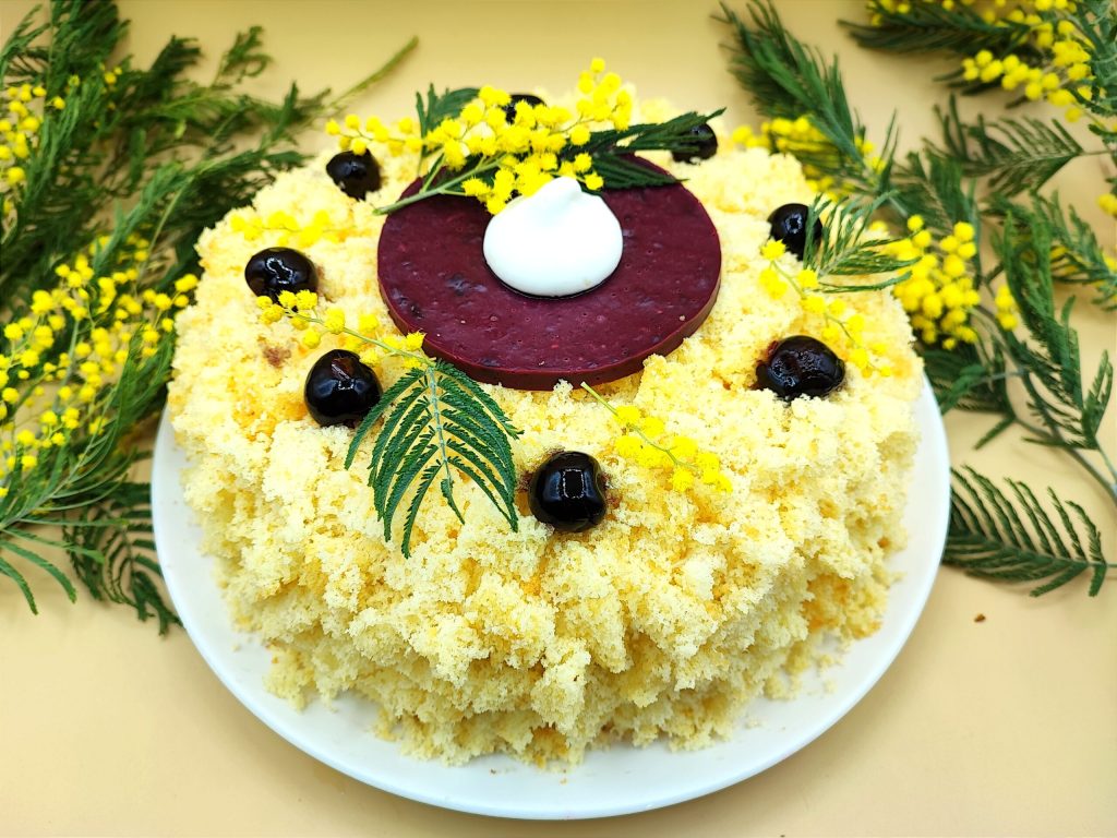 Meine Kreativität, wenn es um Mimose geht, wird unerklärlich 😂 wenn ich sage okay, das ist die letzte, fällt mir schon eine neue Kombination ein, die ich ausprobieren kann 🙈 Diese Torte habe ich mit einer Baiser-Scheibe, Pan di Spagna, Crème Chantilly und natürlich SAUERKIRSCHE gemacht! Übrigens, für die Tränke habe ich eine Mischung aus Alchermes und dem Sirup der Sauerkirschen verwendet ☺️. Meine Freundin sagte, es erinnert sie an das Eis „COPPA RICA“, also wenn euch Eis gefällt, probiert dieses Rezept aus. Es ist etwas langwierig in der Zubereitung wegen des Baisers, aber es lohnt sich!!