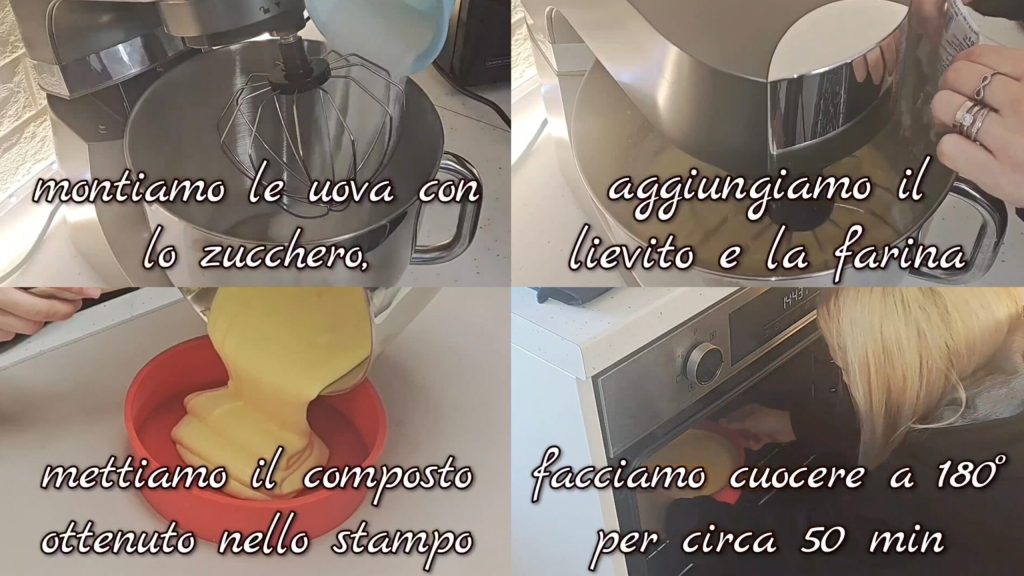 Die Eier mit dem Zucker schlagen, bis eine cremige Masse entsteht (sie sollte das Volumen verdreifachen). Das Backpulver und das Mehl nach und nach hinzufügen und die Geschwindigkeit auf ein Minimum reduzieren. Die entstandene Masse in die Form geben und bei 180° etwa 50 Minuten backen.