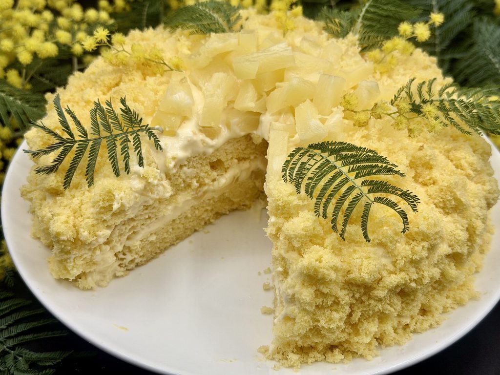 Die Mimosentorte mit Ananas ist eine der beliebtesten Varianten der klassischen Mimosa.