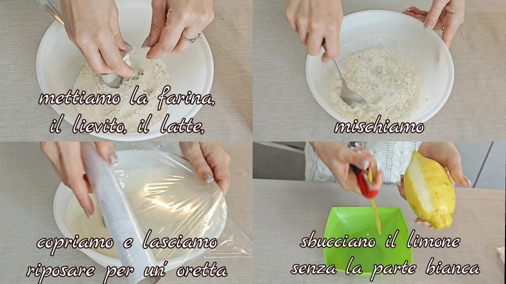 In eine Schüssel geben wir das Mehl, die Hefe, die Milch und mischen, lassen es etwa eine Stunde ruhen.