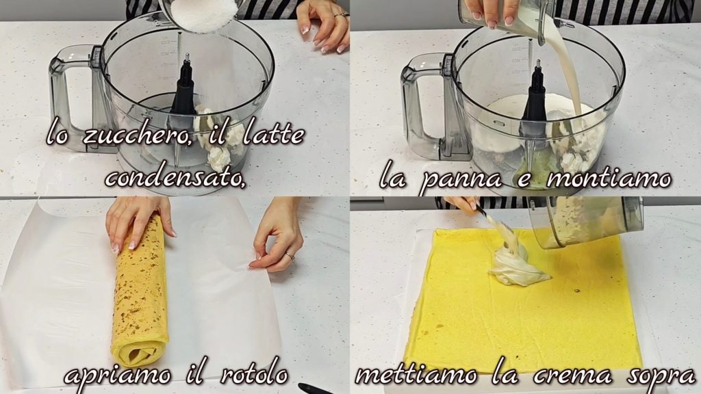 Die Rolle nehmen, aufrollen und die vorbereitete Creme hinzufügen.
