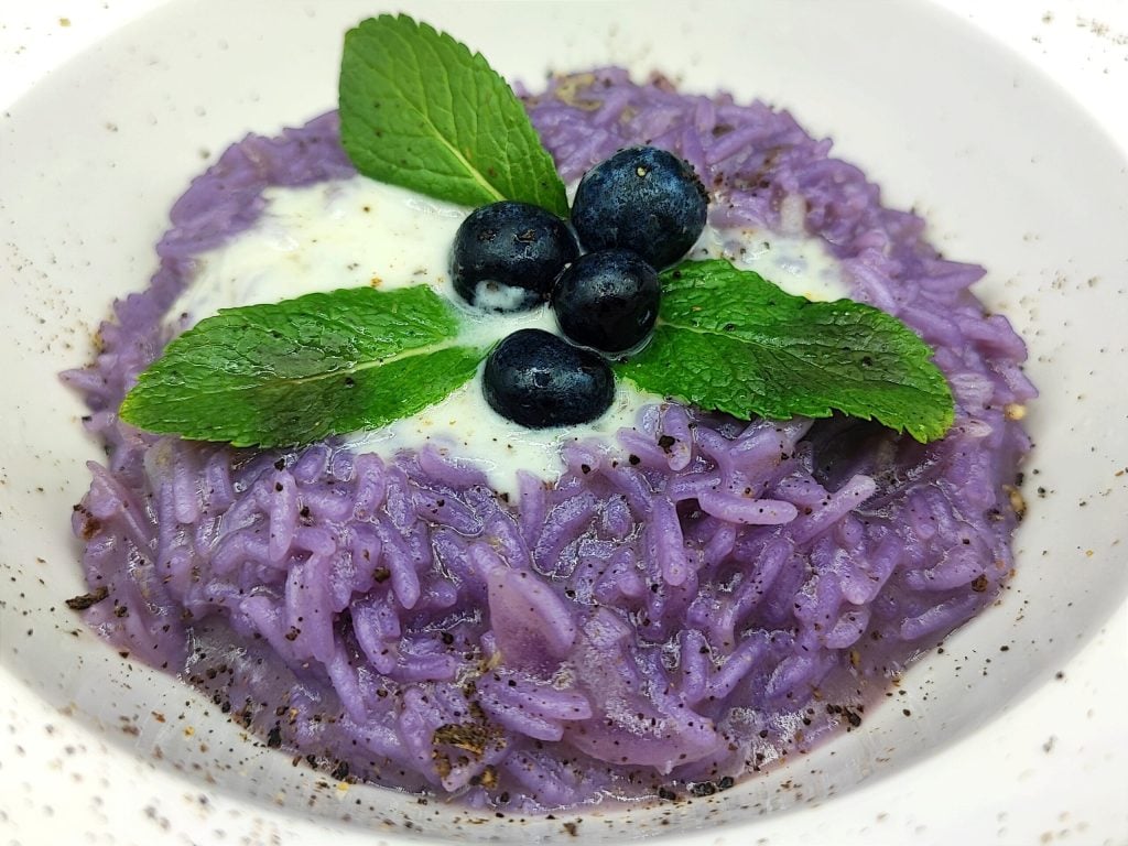 Risotto mit Heidelbeeren, Käse und Pfeffer