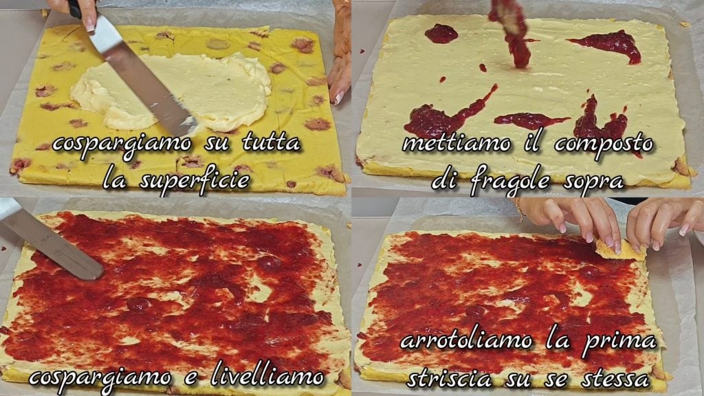 Für die Zubereitung der Rolle mit Creme und Erdbeeren schaut das Video HIER an.