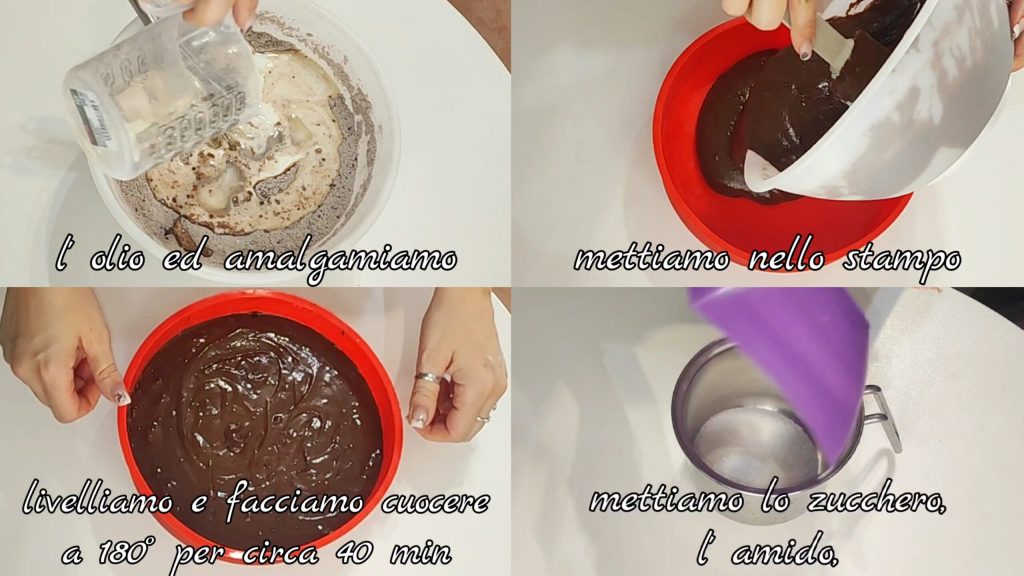 das Öl hinzu und mischen alles. Wir geben es in die Form. Wir ebnen es und backen bei 180° für ca. 40 Min.