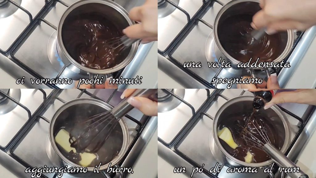 Es dauert nur wenige Minuten. Sobald es eingedickt ist, fügen wir die Butter und ein wenig Rum-Aroma hinzu.
