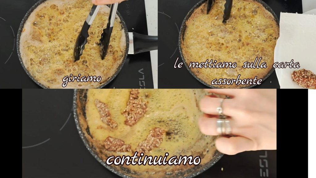 Wir drehen sie um und sobald sie fertig sind, legen wir sie auf Küchenpapier.