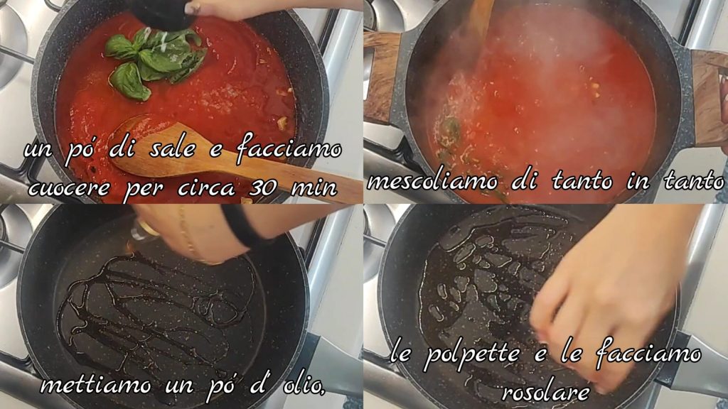 Die Bällchen wenden und sobald sie fertig sind, in die Sauce geben und weitere 10 Minuten bei schwacher Hitze kochen lassen.