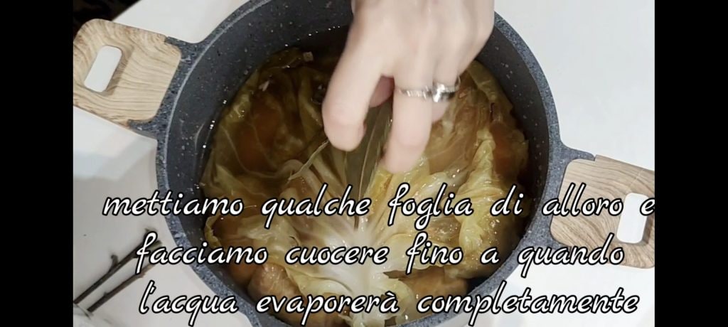 • Ein paar Lorbeerblätter hinzufügen und kochen, bis das Wasser vollständig verdampft ist.