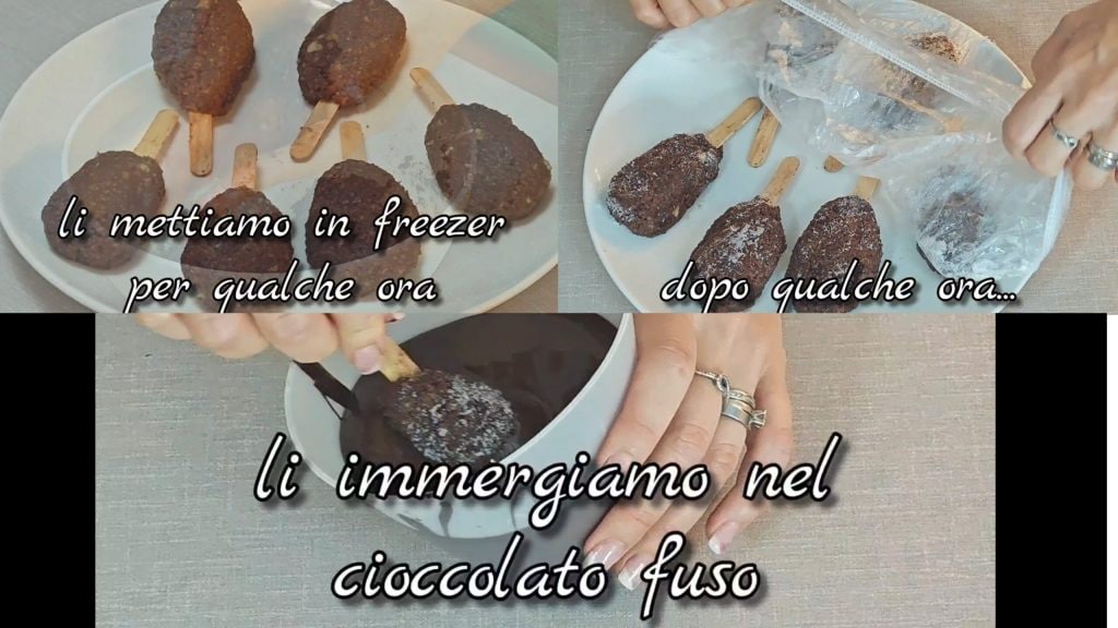 Sobald sie fertig sind, legen wir sie für ein paar Stunden in den Gefrierschrank, dann tauchen wir sie in geschmolzene Schokolade und legen sie wieder in den Gefrierschrank, bis sie gebraucht werden!