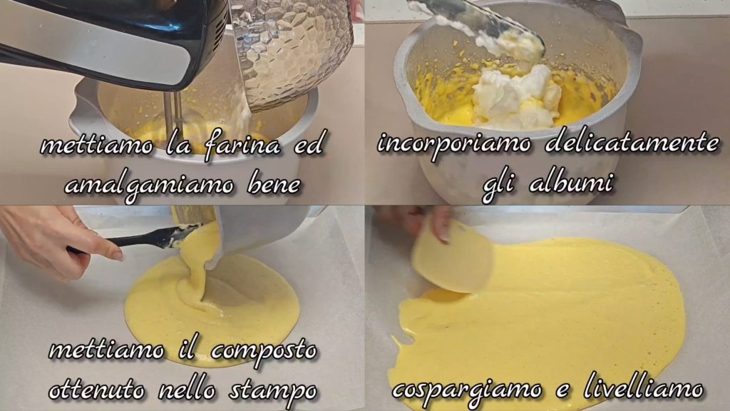 Füge das geschlagene Eiweiß vorsichtig in kleinen Mengen hinzu und rühre von unten nach oben, um den Teig nicht zu entlüften.