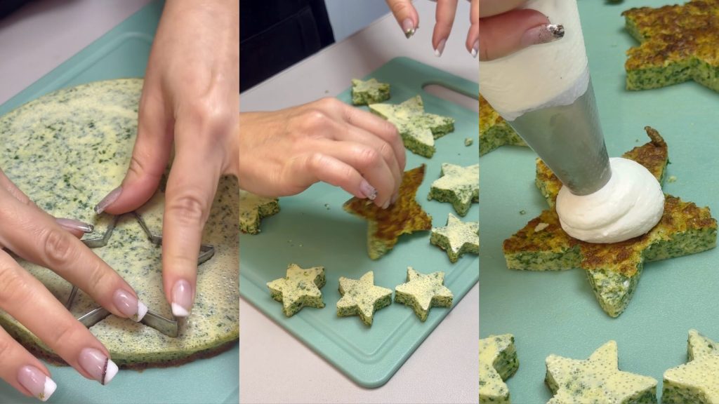 • Sobald es abgekühlt ist, das Omelett mit Sternförmigen Ausstechern in verschiedenen Größen ausstechen.