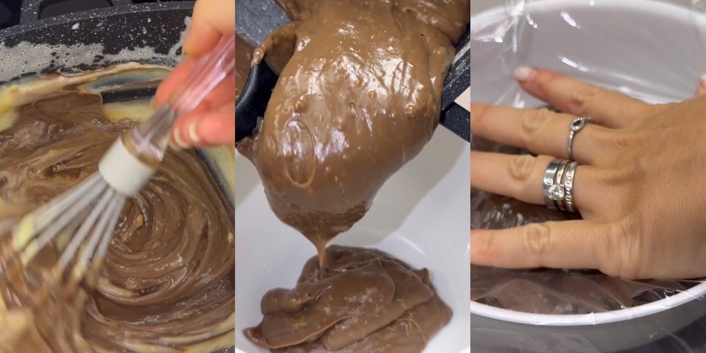Rühren, bis sie schmilzt. In eine Schüssel umfüllen, mit Frischhaltefolie abdecken und abkühlen lassen.