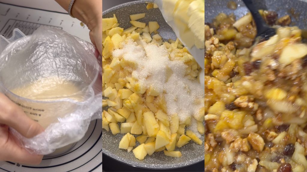 Der weiche Teig wird um eine unwiderstehliche Füllung aus karamellisierten Äpfeln, Rosinen und gehackten Nüssen gewickelt und mit einer Rumglasur vollendet, die nach Festen duftet.