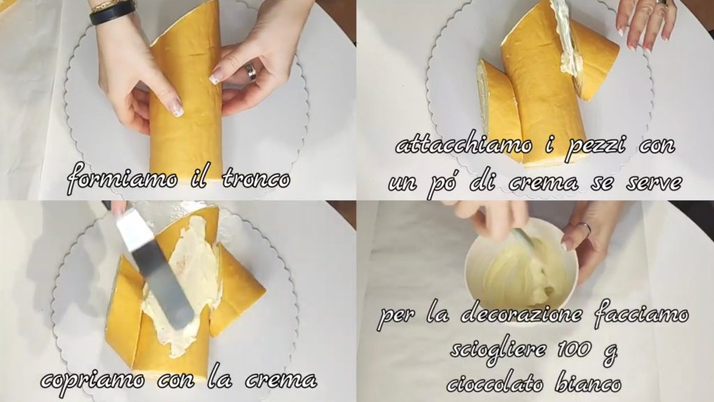 Ein weicher Baumstamm, gemacht wie eine Rolle, gefüllt mit Chantilly-Creme, dann wie ein Stamm zusammengebaut und mit weißer Schokolade dekoriert, um die Rinde nachzubilden. Ein sehr eindrucksvoller Nachtisch, ideal zum Servieren während der Weihnachtszeit und perfekt, um es in unser Weihnachtsmenü zu integrieren. Ich garantiere Ihnen, dass Sie einen großen Eindruck machen werden 😉.