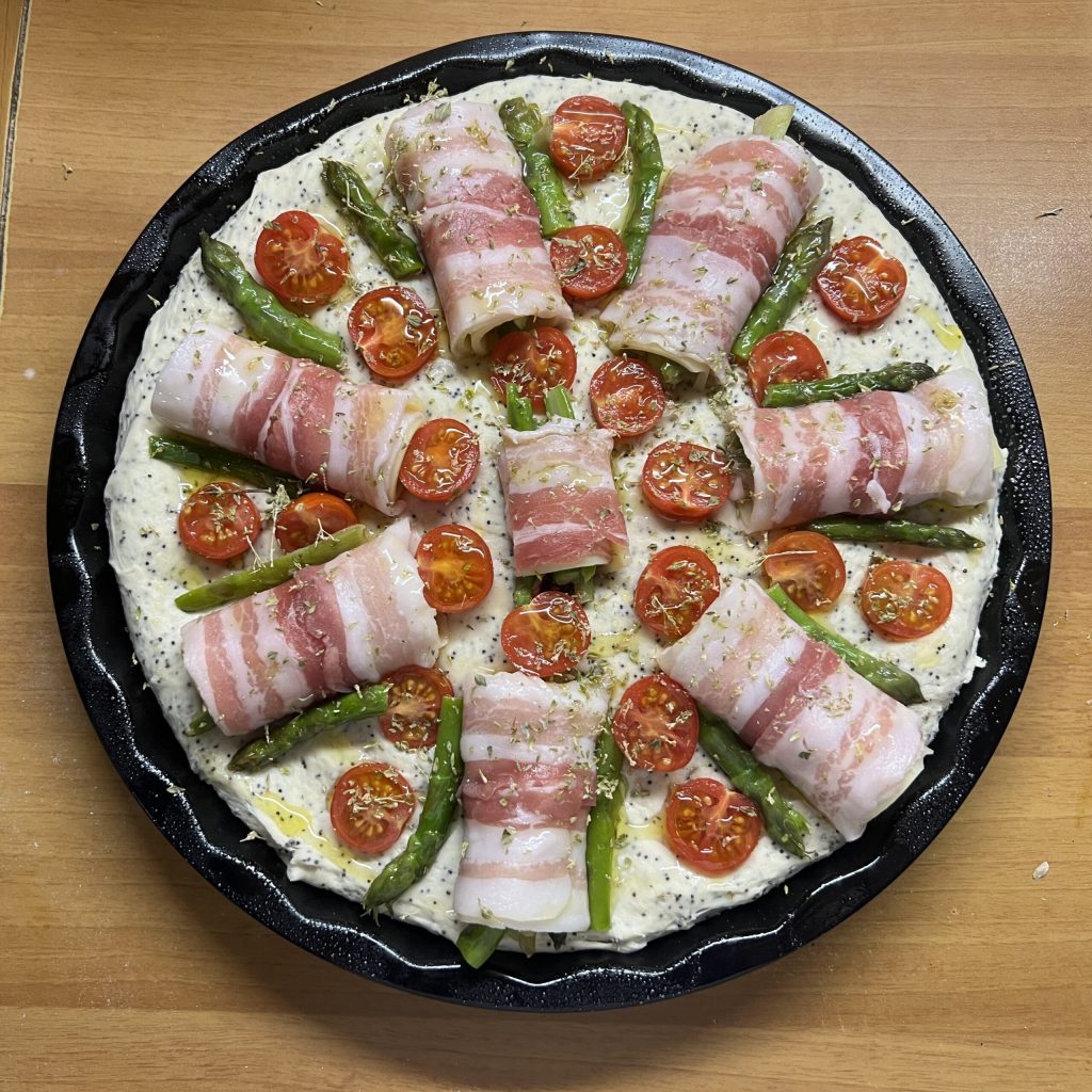 Focaccia mit Spargel, Speck und Kirschtomaten