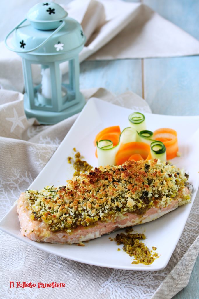 Lachs ist ein Fisch mit zartem Geschmack, der normalerweise auch denen schmeckt, die keinen Fisch mögen. In diesem Rezept sorgt dann eine schmackhafte knusprige Kruste aus Pistazienpesto und Panko dafür, dass der Fisch feucht und saftig bleibt.