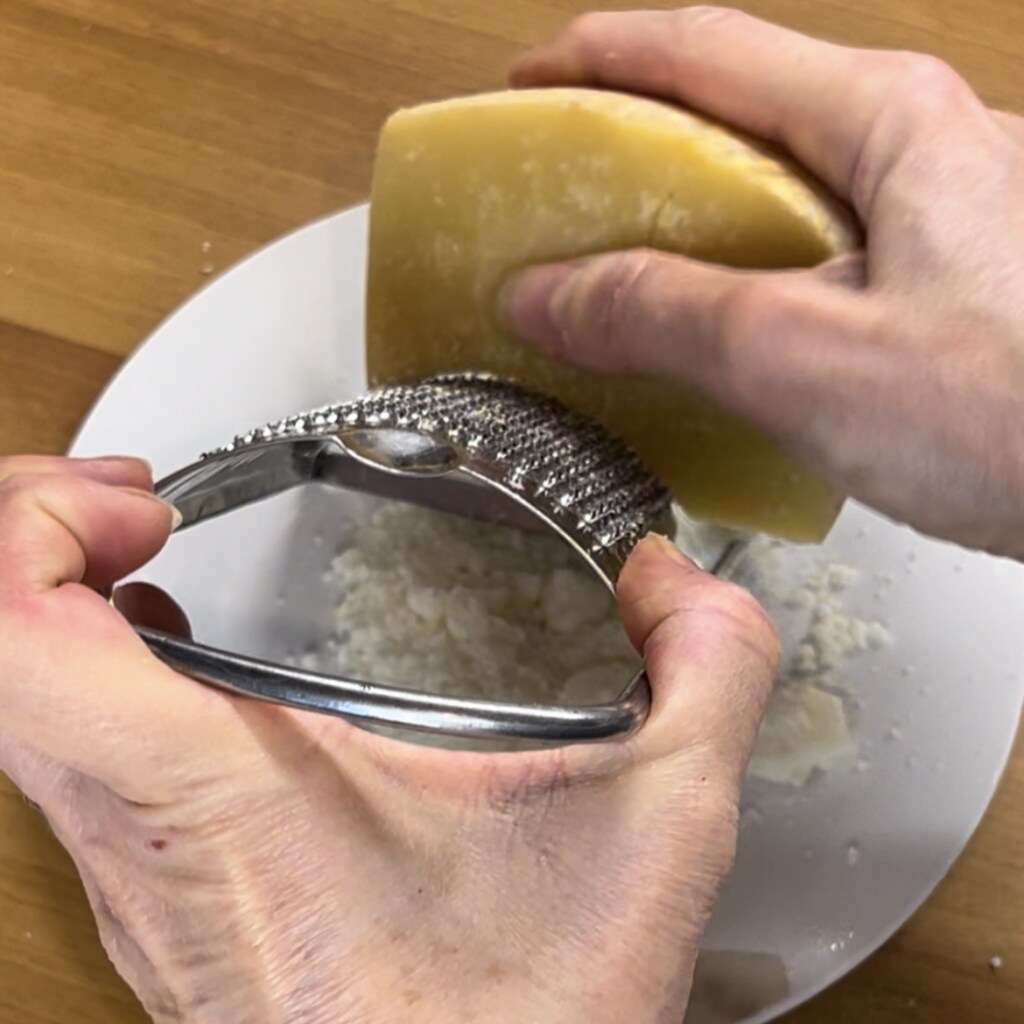 • Den geriebenen Pecorino zusammen mit der Sahne in einen kleinen Topf geben und bei schwacher Hitze erwärmen