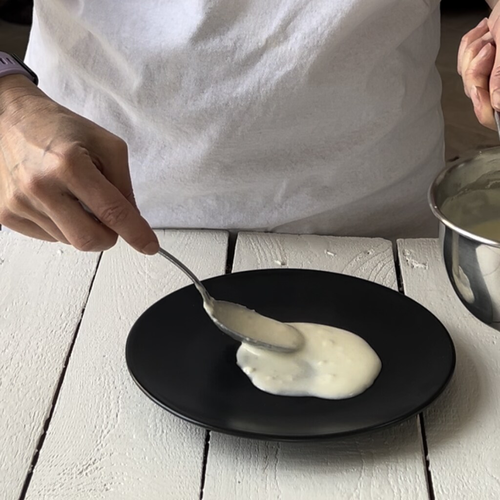 • Ein wenig Pecorino-Creme auf den Teller geben