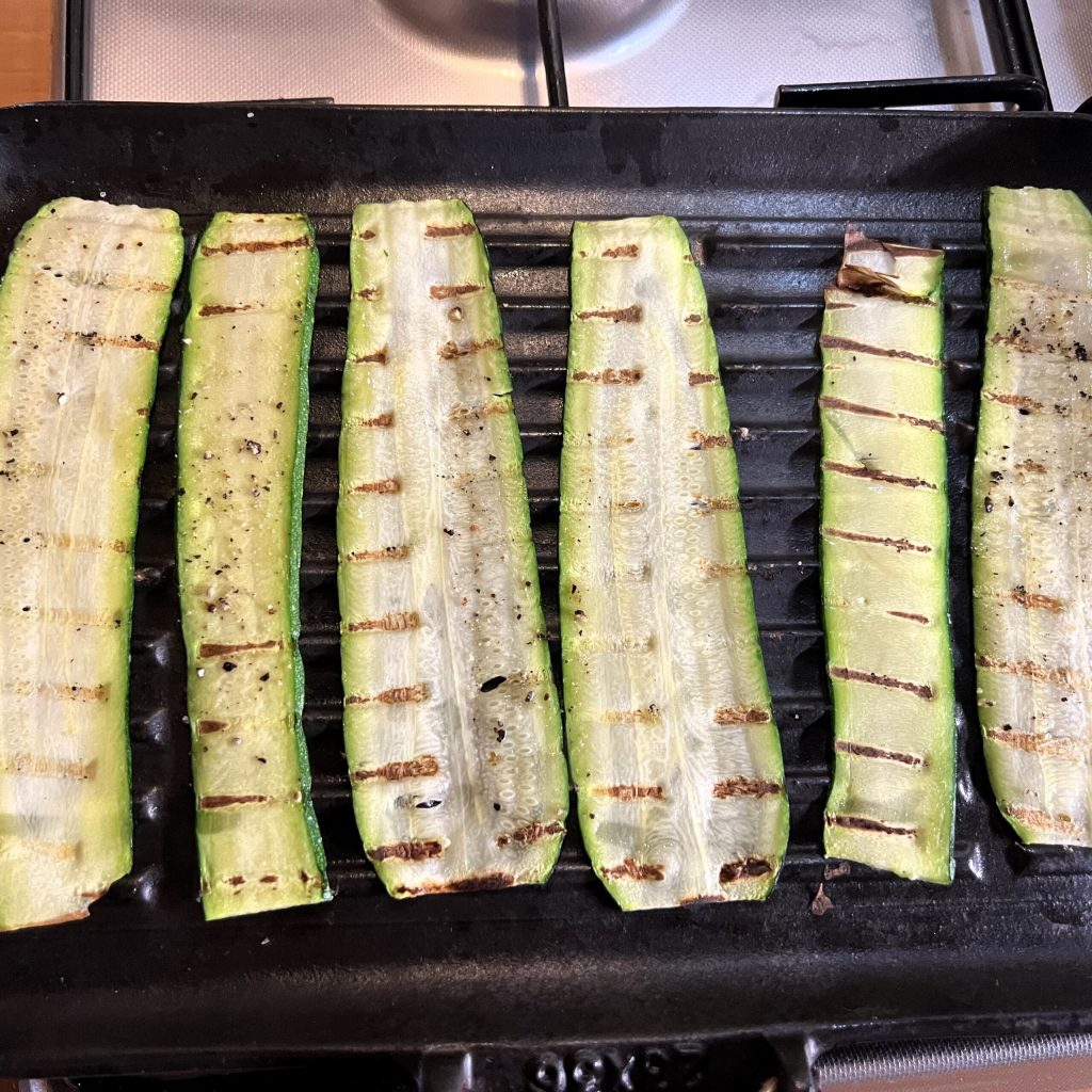 Bedecken Sie alles mit den gegrillten Zucchini