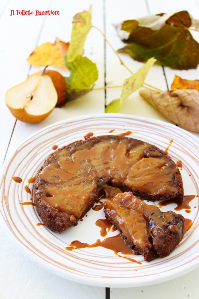Die Tarte-Tatin mit Birnen und Schokolade ist ein geschmackvoller und reicher Kuchen, der auch für Menschen geeignet ist, die an Zöliakie leiden, da alle verwendeten Mehle glutenfrei sind.