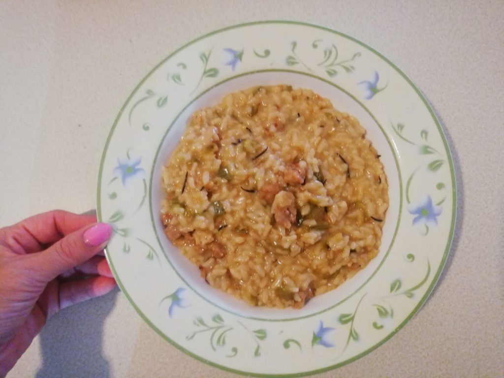 Heute habe ich das Risottorezept in 7 Minuten dank des Schnellkochtopfs mit Zucchini und Wurst zubereitet.