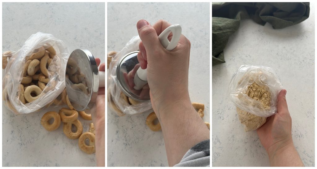 Absolut ja! Ich habe diesen Weg gewählt, um nicht zu viele Werkzeuge schmutzig zu machen, aber wenn das für dich kein Problem ist, mische die Taralli bis du ein Pulver erhältst.