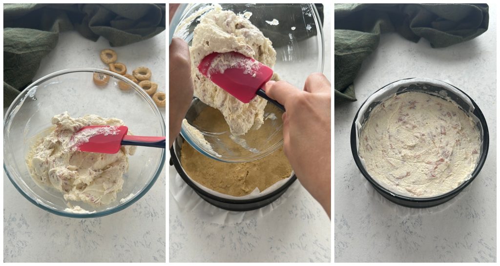Um diese Köstlichkeit zuzubereiten, beginnt man damit, den Boden mit Taralli zu kreieren, obwohl man auch salzige Kekse oder Cracker verwenden kann, die mit Fett gemischt und auf den Boden einer Springform gedrückt werden. Auf diesen Boden wird die Käsecreme verteilt.