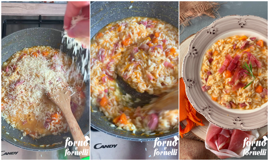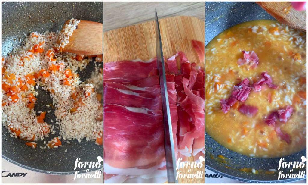 Wie man das Kürbis-Risotto mit Speck zubereitet
