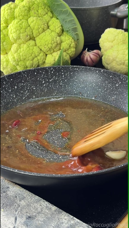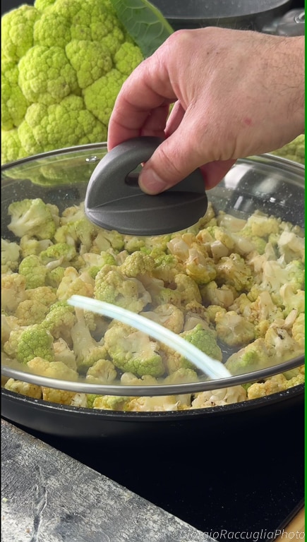 Der Blumenkohl in der Pfanne ist ein einfaches und bescheidenes Gericht der italienischen Küche, aber reich an Geschmack, perfekt, um eines der vielseitigsten Gemüse der Saison zu nutzen. Dieses Rezept kombiniert die Zartheit des Blumenkohls mit der Intensität der in Öl eingelegten Sardellen und dem einhüllenden Aroma des Knoblauchs und bereichert alles mit einem Hauch von Tomatenmark für einen noch volleren Geschmack. Dank weniger, aber qualitativ hochwertiger Zutaten – Blumenkohl, extra natives Olivenöl, Knoblauch, Sardellen, Tomatenmark und etwas Wasser – erhältst du eine leichte und geschmackvolle Beilage, ideal, um Fleisch- oder Fischgerichte zu begleiten oder allein für eine einfache, aber zufriedenstellende Mahlzeit zu genießen. Unten findest du weitere Rezepte mit Blumenkohl.