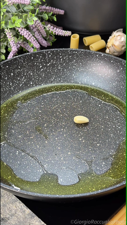 • Die gebackene Pasta mit Pilzen und Wurst ist ein cremiges Hauptgericht, reich an Geschmack und perfekt, um die ganze Familie am Tisch zu vereinen. Sie lässt sich wirklich in wenigen Schritten zubereiten und begeistert auf den ersten Blick mit ihrer goldenen und unwiderstehlichen Gratinschicht. Nachdem die Portobello-Pilze gereinigt und in Scheiben geschnitten wurden, erhitze etwas Öl in der Pfanne zusammen mit der ganzen Knoblauchzehe, um es zu aromatisieren.