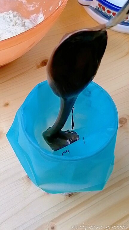 Wenn du mit dem Frittieren der Zeppole fertig bist, fülle einen Spritzbeutel mit einer kleinen Tülle mit Nutella oder Schokolade.