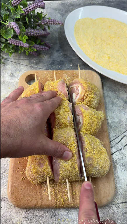 Außen knusprig dank der Panade aus Maismehl, innen weich mit einer schmelzenden Füllung aus Schinken und Käse, werden sie ohne Eier zubereitet und sind ideal für die Heißluftfritteuse.