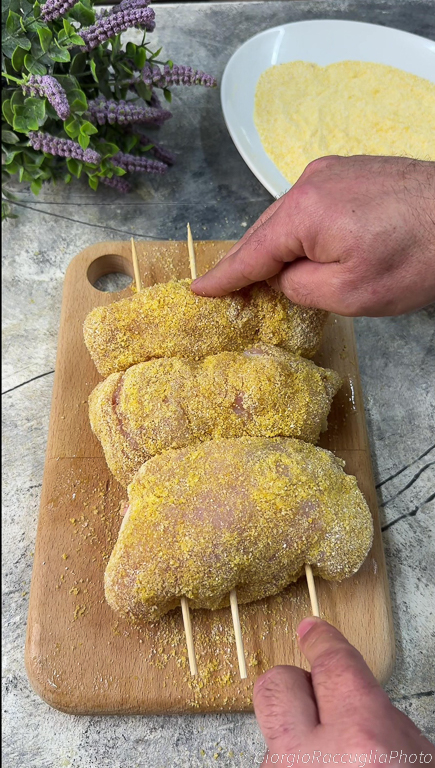 • Wende sie im Maismehl, sodass die Panade gut haftet.