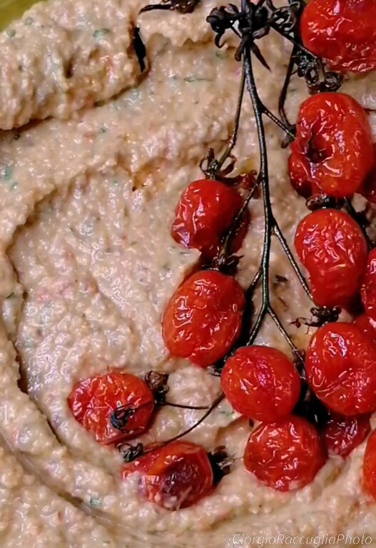 Heute bereiten wir das Hummus-Rezept mit Datteltomaten und Oliven zu, eine typische Kichererbsencreme der orientalischen Küche, verfeinert mit Tahini-Sauce, Zitronensaft, Knoblauch und Gewürzen. Man kann es als Vorspeise genießen, auf Brot oder Crostini gestrichen, oder als Beilage zu rohem oder gekochtem Gemüse. In diesem Rezept wird das Hummus noch schmackhafter mit der Zugabe von Datteltomaten und grünen Oliven, die Farbe und Frische auf den Teller bringen. Eine einfache und schnelle Idee, um ein originelles und leckeres Hummus zuzubereiten. Das Hummus mit Datteltomaten und Oliven ist ein vegetarisches und veganes Rezept, das auch für Personen geeignet ist, die eine glutenfreie oder laktosefreie Diät befolgen. Es ist eine nahrhafte und gesunde Zubereitung, reich an Proteinen, Ballaststoffen, Vitaminen und Mineralstoffen. Hummus ist eine Möglichkeit, Kichererbsen zu konsumieren, eine Hülsenfrucht, die gut für das Herz, das Immunsystem und die Verdauung ist. Außerdem bringen die Tomaten und Oliven Antioxidantien, ungesättigte Fettsäuren und viel Geschmack auf den Teller. Das Rezept für Hummus mit Datteltomaten und Oliven ist daher köstlich und vorteilhaft, zu jeder Jahreszeit einen Versuch wert. Unten lasse ich Ihnen weitere Rezepte. sehr frisch.